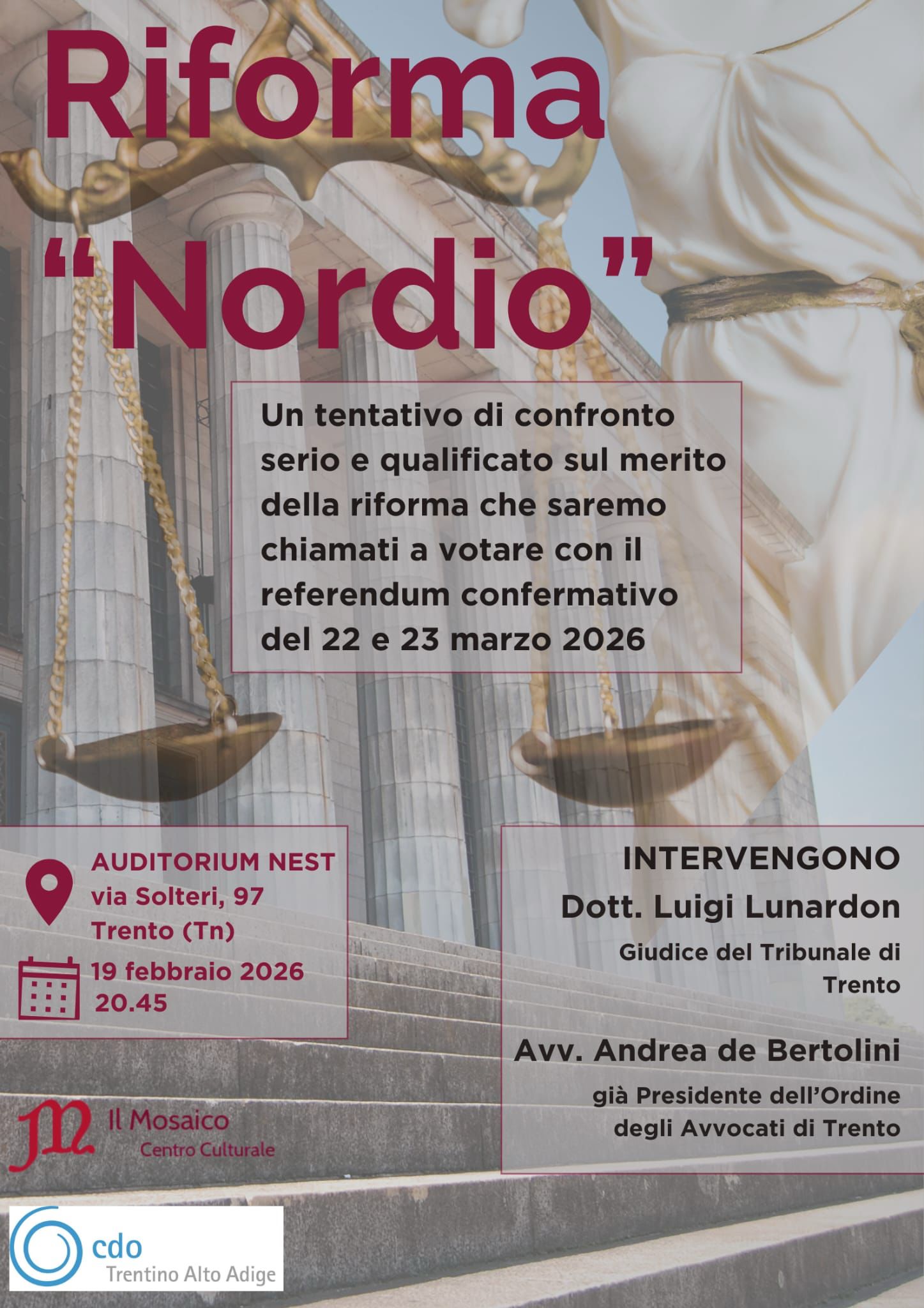 In questo contesto, Compagnia delle Opere sostiene un confronto pubblico serio e qualificato sul merito della riforma. In questa direzione si colloca l’incontro in programma il prossimo 27 febbraio alle ore 21.00 presso l’Auditorium Leone XIII (Via Leone XIII 12, Milano), che vedrà dialogare il Sottosegretario alla Presidenza del Consiglio, Alfredo Mantovano, e il Presidente del Comitato per il No, Enrico Grosso. Un appuntamento pensato come occasione di approfondimento e confronto tra posizioni diverse, che rappresenta il primo di una serie di iniziative analoghe promosse dalle Cdo territoriali e dai centri culturali, con l’obiettivo di contribuire a un dibattito pubblico informato e non ideologico su un tema centrale per la vita democratica del Paese.