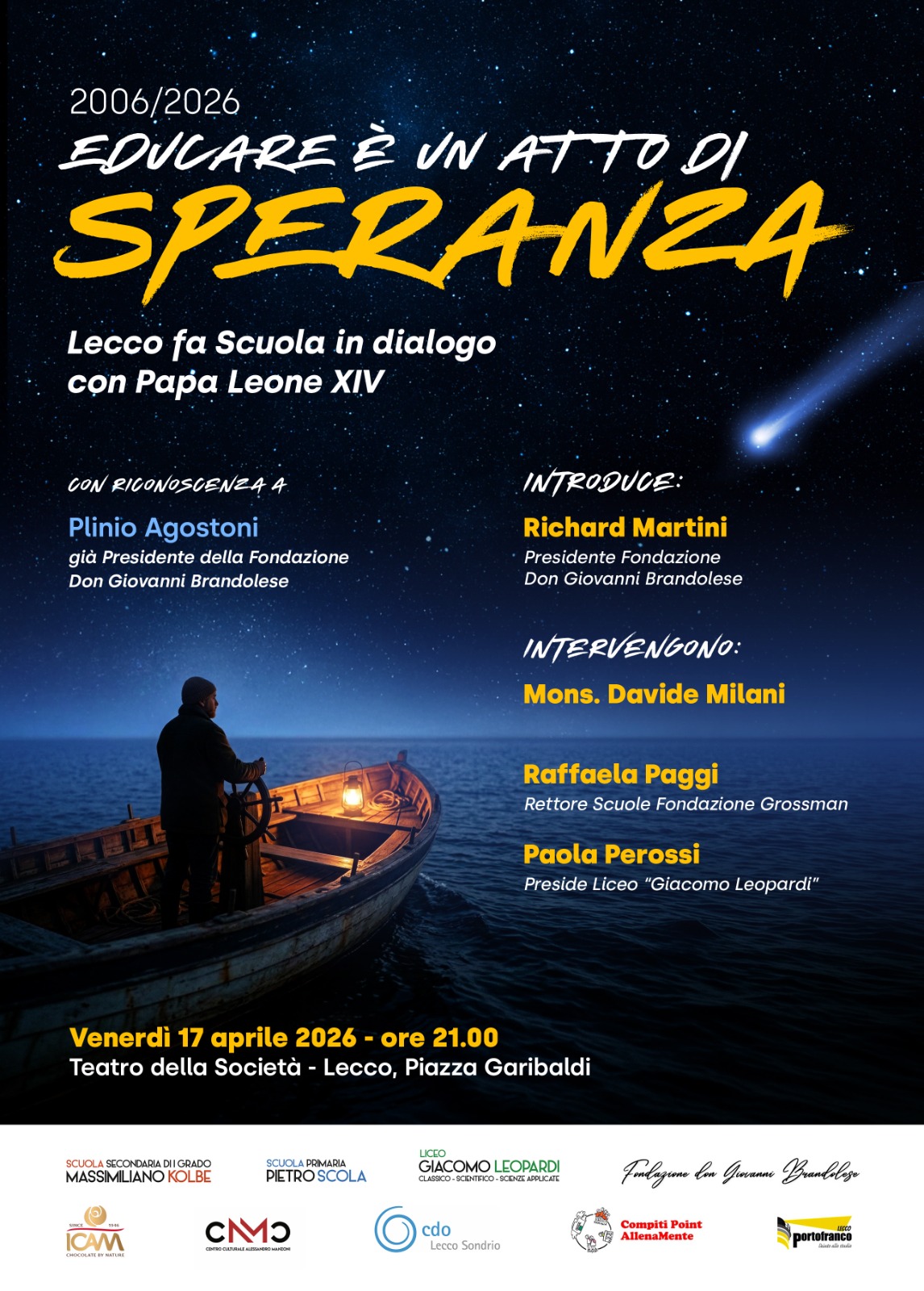 Lโ€™incontro, voluto in memoria di Plinio Agostoni, affronterร  il tema dellโ€™educazione alla luce della lettera apostolica di papa Leone XIV โ€œDisegnare nuove mappe di speranzaโ€.