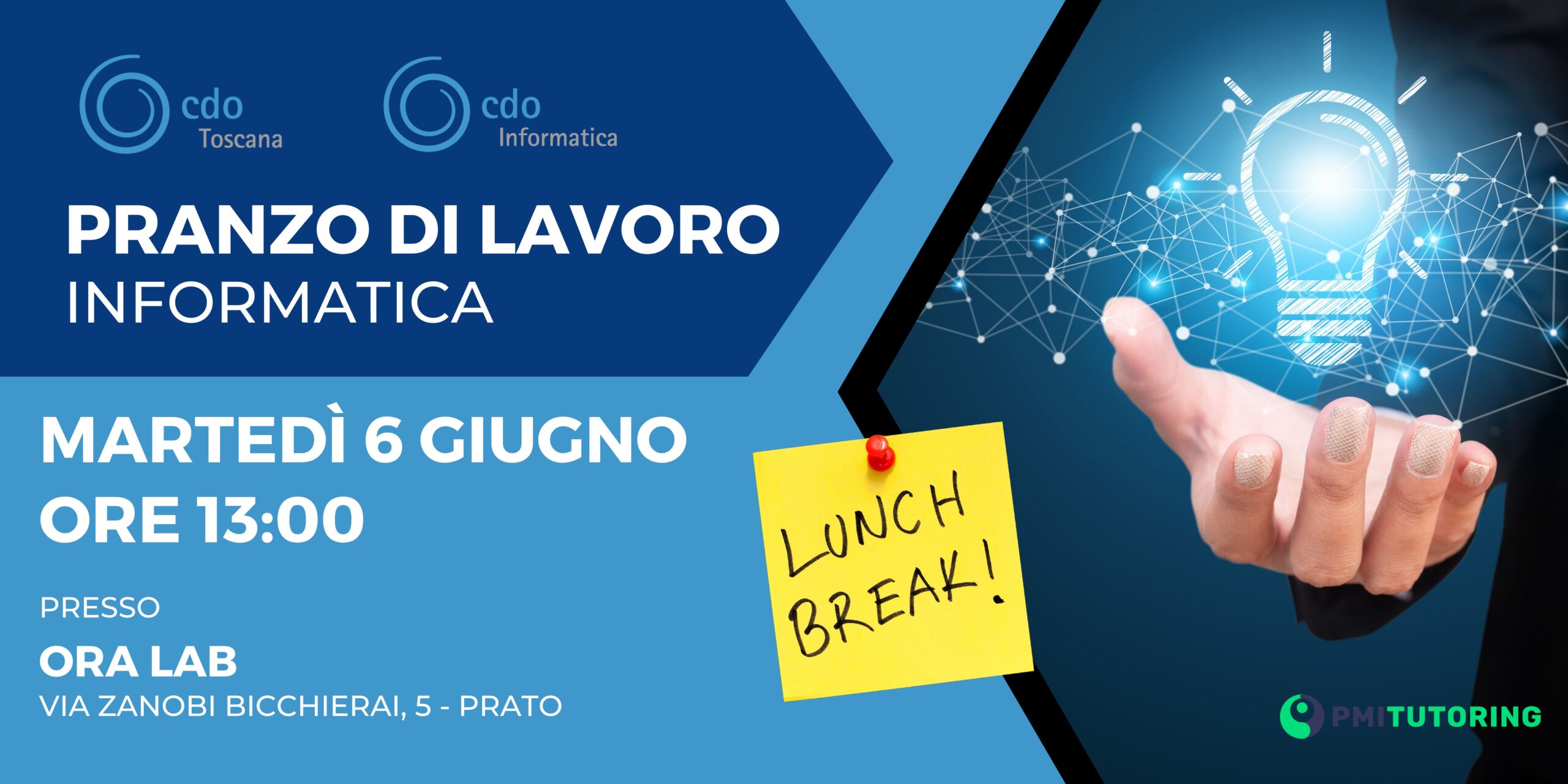 Martedì 6 giugno ore 13:00 presso “Ora Lab Food & Events” via Zanobi Biccherai 5 Prato