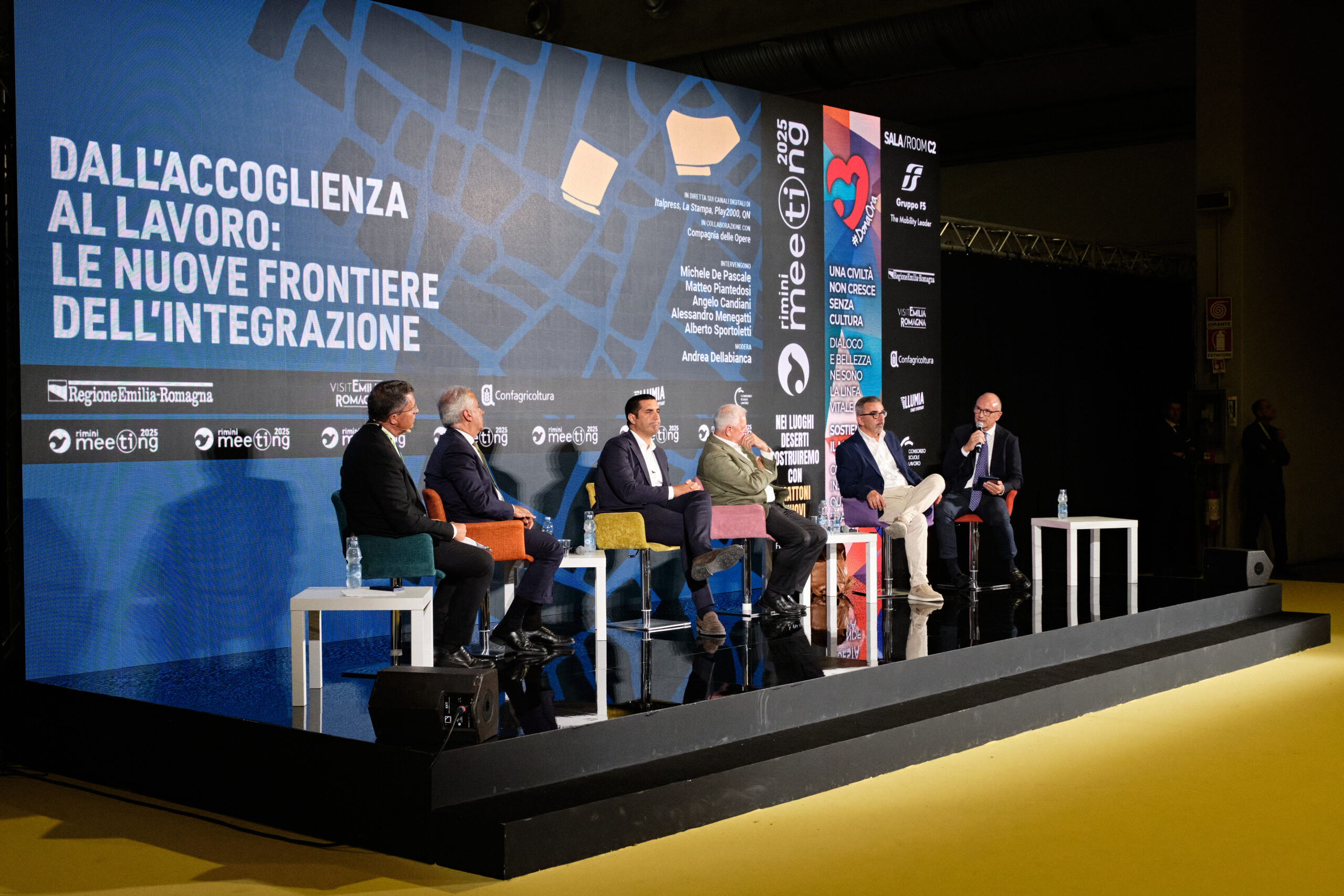 Michele De Pascale, presidente Regione Emilia-Romagna; Matteo Piantedosi, ministro dell’interno. Modera Andrea Dellabianca, presidente Compagnia delle Opere. In occasione dell’incontro interventi e testimonianze di opere sociali: Angelo Candiani, presidente ASLAM Cooperativa Sociale; Alessandro Menegatti, presidente della cooperativa sociale Work and belong di Comacchio; Alberto Sportoletti, presidente e CEO SERNET e presidente Retemanager.