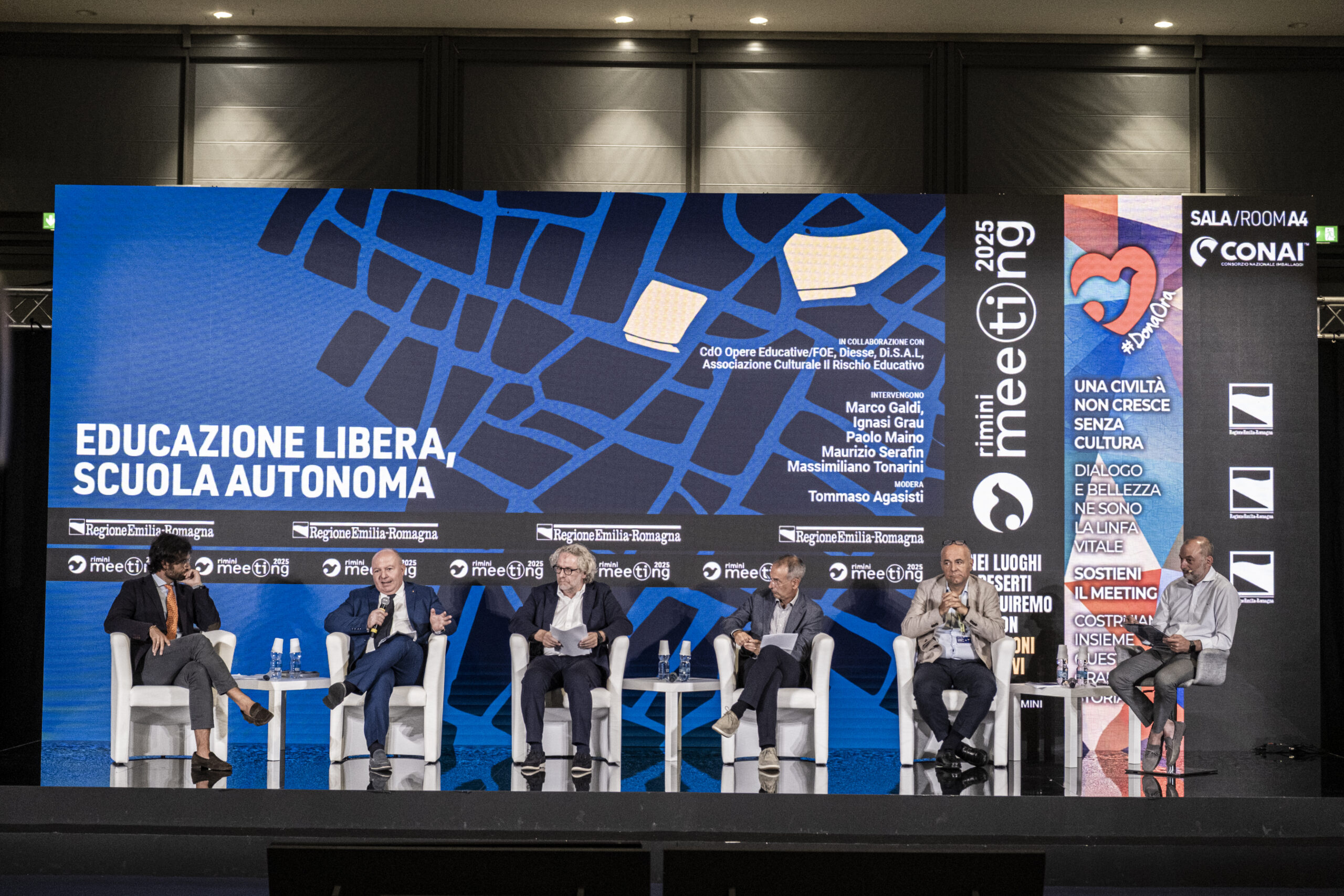 Ignasi Grau, direttore OIDEL; Marco Galdi, Professore associato di Istituzioni di Diritto pubblico, Università degli Studi di Salerno; Paolo Maino, presidente Di.S.A.L. e dirigente scolastico ITE Gadda Rosselli di Gallarate (VA); Maurizio Serafin, presidente ADI Toscana – Associazione Docenti e Dirigenti Scolastici Italiani; Massimiliano Tonarini, presidente CdO Opere Educative-FOE.